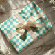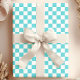 Papel De Presente Padrão Xadrez Aqua e Branco