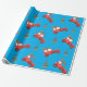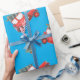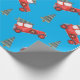 Este papel festivo de embrulho de Natal para amantes de carros é perfeito para seus presentes de Natal. Um fundo azul brilhante complementa o vermelho, carros vintage com árvores de Natal amarradas ao topo. Papel perfeito para presentes para crianças também.