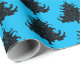 Árvores de Natal pretas e azuis têm papel de embalagem de qualidade. Papel de embrulho de presente de alta qualidade em um rolo - você escolhe o comprimento! Um padrão de pinheiros pretos, e espirais azuis, é o design. Design de férias contemporâneo.