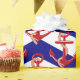 Este design náutico vibrante apresenta âncoras vermelhas em um fundo marinho e faixa branca de gesso.