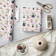 Um bom padrão de plantas, gatos e latas de água em rosa pálido.