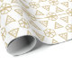 Papel de embrulho festivo moderno de presente festivo, branco e triangular geométrico, de cor branca e dourada.