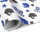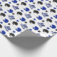 Este papel de embrulho divertido é versátil e pode ser usado para dar presentes ou projetos de arte e artesanato. O design apresenta capacetes e faz arte em equipe em azul e preto. Perfeito para aniversários ou Natal.