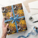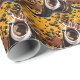O padrão preto de café na imagem apresenta múltiplas visões de cima para baixo dos copos de café enfeitados com arte artificial em espuma. Cada copo apresenta um design único na sua superfície de espuma, incluindo uma forma cardíaca, uma Rosetta (padrão foliar) e uma espiral intrincada parecida com uma flor. A paleta de cores quentes — tons de marrom para o café e branco para os copos e a espuma artística — cria um confortável ambiente de café. Algumas xícaras são acompanhadas por discos, e você vai encontrar grãos de café por perto. No geral, é uma mistura deliciosa de estética do café, perfeita para papel de embrulho Zazzle!