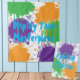 Kids art or painting party featuring bold colorful splatter
