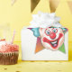 Um desenho animado fofo e engraçado (ou assustador e assustador!) pintou o rosto do palhaço com um nariz vermelho.