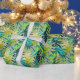 Folhas tropicais de palma em papel de embrulho azul e verde, divertida para qualquer ocasião.