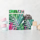 Adicione um toque de vibrações de praia ao seu embrulho de presente com este impressionante papel de embrulho com ilustrações Watercolor de folhas tropicais de palma. Os requintados detalhes botânicos são capturados lindamente, fazer papel de embalagem perfeito para qualquer amante da natureza ou da praia. Projetado pelo artista australiano Jo Story of Sketchbook Design, este papel de embrulho é um design único e original que certamente fará seu presente se destacar.