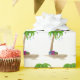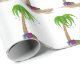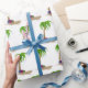 Palmeira na areia da praia com presentes de Natal e ornamentos de férias em branco. A cor de fundo pode ser alterada