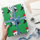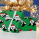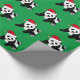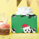 Papel de embrulho de Natal bonito, com um belo urso panda, vestindo um chapéu de santa vermelho no papel verde. Bonito papel de embrulho de férias.