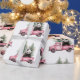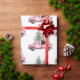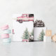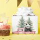 Bela Panda em papel de embrulho de Truque Vintage Rosa. Desenho em aquarela de um urso branco giro num caminhão-oficina cor-de-rosa e árvores de Natal com fitas.