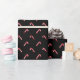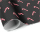 Papel de mola para enrolar, branco e preto. Padrão de cana doce vermelho e branco, fundo preto. Excelente para o Natal e o feriado.
