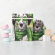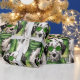 Um cão Dalmaciano com aparência excelente em óculos de sol verdes e um cachecol verde de inverno é modelado neste presente de cachorro para a temporada de férias ou qualquer ocasião para dar presentes.