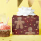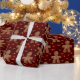 Este papel de embrulho fofo para o Natal apresenta um padrão festivo de gengibre. À sua volta estão pequenos ouros e estrelas, com um padrão vermelho de veludo (faux) embaixo deles. Este belo e meticuloso pacote de Natal também poderia ser usado para artesanatos de papel de Natal, raspagem ou desvinculação para projetos de férias, e faria um papel de embrulho de Natal muito adequado para presentes infantis.