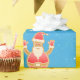 Um presente de Natal moderno para as crianças, com uma design minimalista que inclui uma figura de gengibre de Papais noeis, flocos de neve, a saudação de "Feliz Natal" na tipografia de na moda, e um nome personalizado. Sobre um fundo azul com flocos de neve.