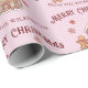 Este papel festivo e personalizado de Natal ou de folheto de férias apresenta um tema de pão de gengibre saudável sobre um fundo cor-de-rosa macio e para bebês. Uma imagem de uma casa de pão de gengibre é fotografada no centro, com um bonitinho de gengibre à esquerda. Pequenos biscoitos vermelhos com flocos de neve estão nevando do céu. Uma amostra de saudação de Feliz Natal é impressa acima da árvore e um nome de família de amostras é impresso abaixo. Você pode personalizar a quebra de presente para incluir seu próprio nome personalizado ou texto.