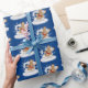 Homem de pão de Natal a mergulhar no leite num fundo azul. A cor de fundo pode ser alterada.