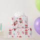 Este adorável papel de embrulho de Natal será amado pelos pequenos da família. É caprichoso e divertido com muita coisa para se ver, incluindo Papai Noel, Canes Doces, Árvores de Natal Brancas, morangos vermelhos e brancos, flocos de neve e estrelas.