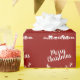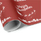 Este festivo papel de embrulho vermelho de Natal mostra a silhueta de Papais noeis que dormem com suas renas, voando sobre as casas em um trilho de estrelas. O texto, em uma fonte branca elegante, é totalmente personalizável.