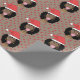 A beleza da pele castanha com cabelo natural veste um chapéu vermelho de Papai Noel sobre sua mãe. Ela está em um fundo esticado e acastanhado com bolinhas vermelhas. Papel de embrulho perfeito para aquele presente especial e pessoa.