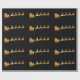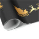 Papel de envolvimento luxuoso com o papai noel dourado do falso pequeno em seu trenó com rena em um fundo preto. Distinto papel de envolvimento para o Natal.