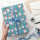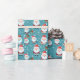 Design de Natal bonito de Natal de Natal Papai Noel e presentes em fundo aqua com flocos de neve.