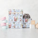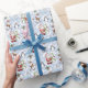 Papel colorido de embrulho de Natal com amigos de Natal: Papai Noel, Homem de Neve, Reindeer Rudolph, Papais noeis Cat e Pinguim.