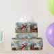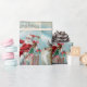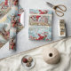 Papel de envolvimento encantador do vintage que caracteriza o papai noel em seu trenó em sua maneira à cidade seguinte.