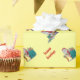 Esta ilustração original de Natal mostra dois Papais noeis, um papai noel está se dobrando para embrulhar brinquedos e presentes em papel colorido de embrulho de Natal e arcos de ouro brilhantes. Vocês podem ver uma boneca de pano e uma bola esperando para ser embrulhada no papel festivo vermelho e verde padronizado. Os outros papais noeis têm um cheio verde de presentes e brinquedos embrulhados, prontos para entrar no trenó dos Papais noeis, que estarão cheios de presentes para o parto do dia de Natal. Estas ilustrações bonitinhas de natal realmente se destacam contra o fundo festivo amarelo de limão-limão neste papel plástico de presente de natal de qualidade. Entre as fotos dos pequenos papais noeis estão as palavras "Saudações dos Sêons" impressas em vermelho sazonal. As fotografias originais dos papais noeis são pinturas a cor da água e estou certo de que todos, de todas as idades, que amam o lado bonito e tradicional da época de férias vão desfrutar destas imagens sazonais envoltas nos seus pressantes de natal nesta época de férias.