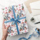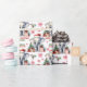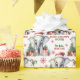 O padrão repetido neste papel de embrulho de Natal é de um elefante de cinza que veste um chapéu de Papai Noel vermelho e branco. O elefante está no meio de pinheiros e presentes de Feriado brilhantemente enrolados. O texto vermelho e verde diz MERRY CHRISTMAS", com o nome do seu filho e sua assinatura abaixo. Outras imagens incluídas no padrão incluem flocos de neve decorativos vermelhos e canas doces.
