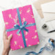 Papel De Presente Papais noeis bonitos Flamingos Padrão Rosa Quente