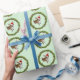 Um chihuahua em um chapéu de Papai Noel é apresentado neste papel de embrulho de Natal