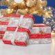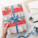 Bandas sazonais sagradas e modelo de fotografia de arco papel de presente de Natal. Ideal para presentes de férias personalizados. Design de Natal sazonal com listras brancas, verdes e vermelhas festivas embelezadas com uma coloração d'água e uma arte arco. Personalize este presente de Natal festivo com a sua própria fotografia especial da sua feliz e crianças brilhantes. As leituras podem ser felizes e brilhantes. Desenhada e ilustrada por Sarah Trett.