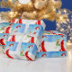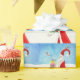 Pai Natal Papai noel presentes de carregando com pássaros enquanto arte de Natal repete papel de presente embrulhado com padrão. Ideal para embrulhar presentes de Papais noeis ou para embrulhar os presentes de férias. Pintura aquosa de Sarah Trett.