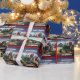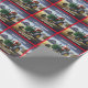 Papel De Presente Papais noeis conduzindo um trator verde
