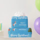 Um presente de Natal moderno com as palavras "Feliz Natal" na tipografia da na moda, flocos de neve, uma ilustração de um unicórnio puxando Papais noeis em seu trenó, e uma árvore de Natal. Sobre um fundo azul com flocos de neve. Observe que você pode personalizar a saudação menor com o nome de uma criança.
