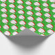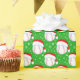 Este papel de embrulho de Natal apresenta Papais noeis de beisebol vestindo chapéus com flocos de neve girando em volta em um fundo verde de Natal.