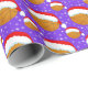 Este papel de embrulho de Natal apresenta um chapéu de Papai noel vestindo basquete com flocos de neve girando em volta de um fundo roxo de Natal.