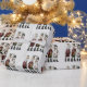 Este papel de embrulho incomum apresenta caracteres coloridos, tradicionais e de Natal. Papais noeis, um Soldado e um Homem de Neve.