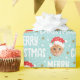 Faça seus presentes se destacarem nesta época de feriados com papel personalizado de embrulhamento de fotos! Esta modelo de cara-a-buraco divertida é personalizada com uma foto favorita, e apresenta um chapéu festivo de Papai Noel, completo com flocos de neve, estrelas e a saudação de "Feliz Natal" em uma fonte alegre. É um design na moda simples, perfeito para fotos de crianças, família, amigos, animais de estimação, gatos e cachorros! Um pacote de presentes de padrão uniforme, disponível com um acabamento mate ou brilhante. Cores impressas: azul, vermelho, verde, branco e ouro.
