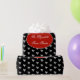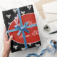 Presentes de Natal com Papais noeis Saudando Ho Ho Ho Red Gift Tag Black and White Pattern Elegante Christmas Gift Wraping Paper com To e From personalizado, você pode alterar ou excluir o texto