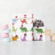 Dinossauros coloridos com o padrão do Papai Noel. Cor de fundo personalizada.