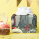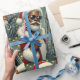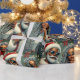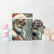 Papais noeis e companheiro estão prontos para comemorar, ambos vestindo roupas temáticas de Natal na moda. Eles estão em um pano de fundo de luzes de férias e decorações, prontos para um encontro festivo.
