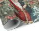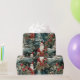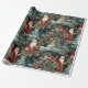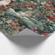 O papel de embrulho apresenta uma cena deliciosa e nostálgica de um Papai Noel antiquado em um charmoso jardim de inverno adornado com um verde-natalino exuberante e majestosas árvores verdes. A design exude o calor e a magia da época de férias.