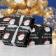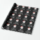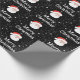 Papel De Presente Papais noeis e flocos de neve sobre fundo preto no