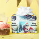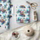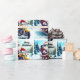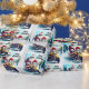Um Papai noel alegre corre na neve na moto. Deve ser assim que ele percorre os outros 364 dias do ano.