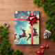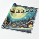 Papais noeis Entregando Presentes no Papel de Embalagem da Véspera de Natal Este papel de embrulho festivo captura a essência mágica da Véspera de Natal com um design vibrante e detalhado. A ilustração mostra Papai Noel em seu icônico terno vermelho, entregando alegremente presentes de seu trenó, que é puxado por uma rena majestosa voando através de um céu noturno estrelado. Abaixo, uma vila confortável e coberta de neve com casas bem iluminadas adiciona um toque de nostalgia e charme. O design é acentuado por estrelas cintilantes, lua de cheio brilhante e uma paleta colorida festiva de vermelho, verde e ouro. Perfeito para embrulhar presentes de todos os tamanhos, este papel de alta qualidade garante que seus presentes se destacarão debaixo da árvore de Natal, espalhando alegria e prazer. Ideal para aqueles que querem adicionar um toque brilhante e animador às suas comemorações de férias!