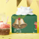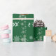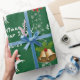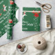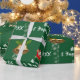 Papel de embrulho de Natal moderno, elegante e fofo, com a imagem de um monocromo puxando Papais noeis para trenó (cheio de presentes), o texto "Feliz Natal e Feliz ano novo 20XX" em escrita na moda / caligrafia e um nome personalizado. Com borrachas de flocos de neve brancos e prateados e um par de sinos Xmas ouros e uma fita vermelha, cada uma com um cintilante de holly, sobre um fundo verde-Natal. Certifique-se de personalizar o nome e o ano.