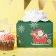 Papel de embrulho de Natal bonito com um monocórnio puxando Papais noeis para o trenó em direção a uma árvore de abeto decorada com bolhas de prata. O unicórnio tem uma mana e uma cauda vermelha e ouro e os Papais noeis de carregares de trenó, juntamente com muitos presentes. Esta versão inclui flocos de neve brancos e prateados brilhantes. Esta design vem com fundo vermelho e verde de Natal.