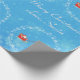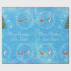 Papel elegante e fofo personalizado de embrulho de Natal com Papais noeis na trama puxados por um unicórnio, vários flocos de neve e árvores de Natal decoradas com bolhas de prata. Perfeito para crianças pequenas, especialmente meninas que gostam de unicórnios. Com as saudações personalizáveis "Feliz Natal!" + "Amor, Papais noeis" em roteiro/caligrafia na moda-cursiva. Sobre um fundo azul.